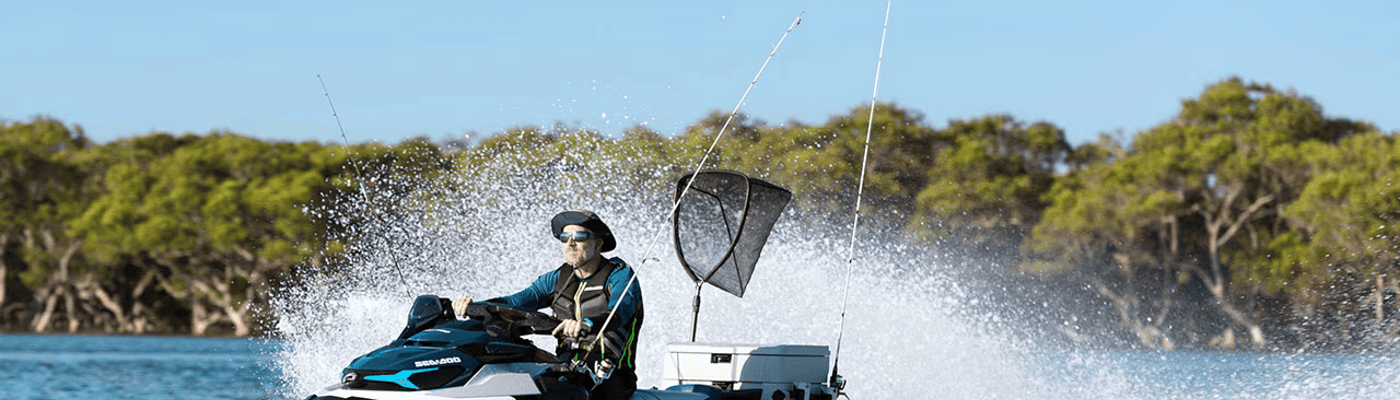 Sea-Doo Fish Pro är specialtillverkad för fiske och med fiskeentusiasten i åtanke, och är den vattenskoterfamilj som för dig närmare händelsernas centrum än någonsin. Den inkluderar kylboxar för din fångst, spöhållare, Garmin Fish Finder m.m.